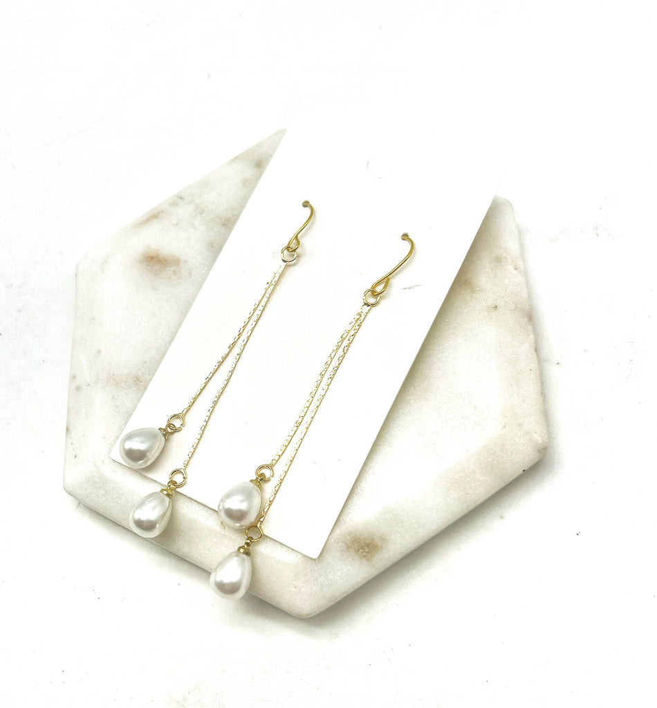 Stunning imitation pearl earrings Made with nickel free hooks, they measure around 2.5 inches