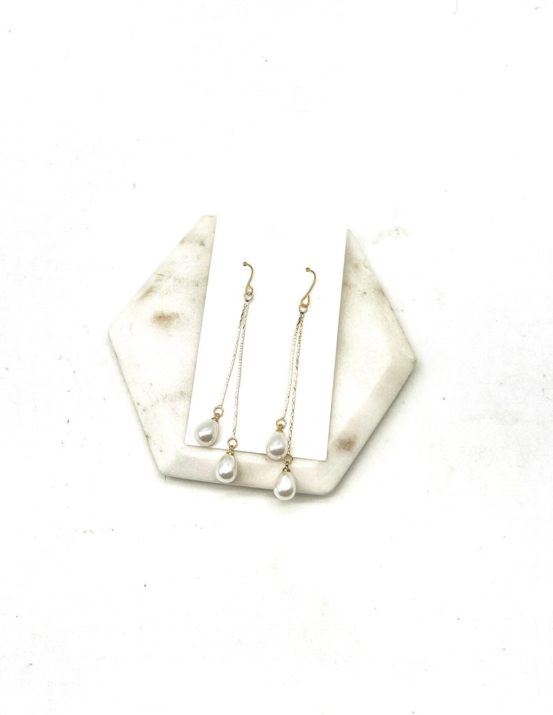 Imitation Pearl Double Dangle Chain Earrings