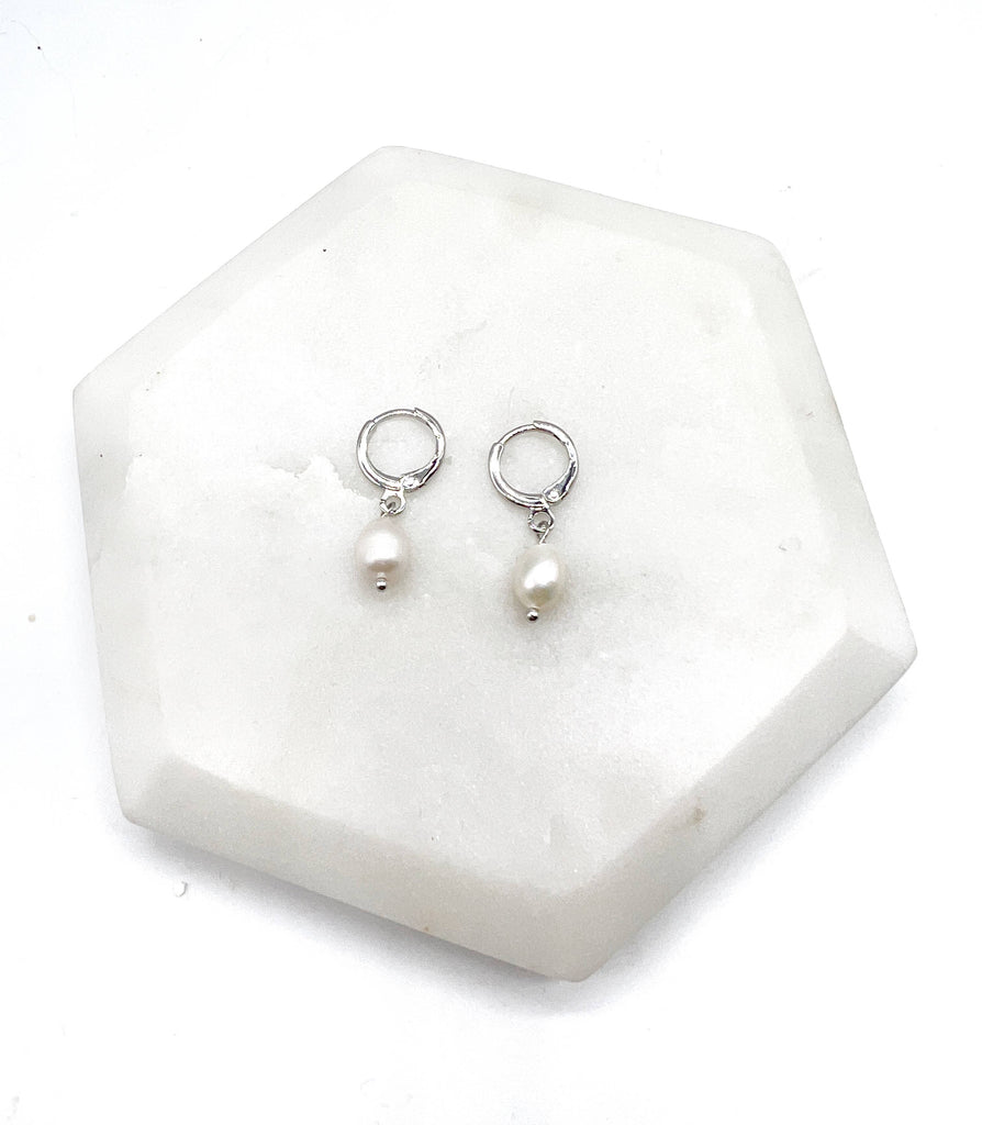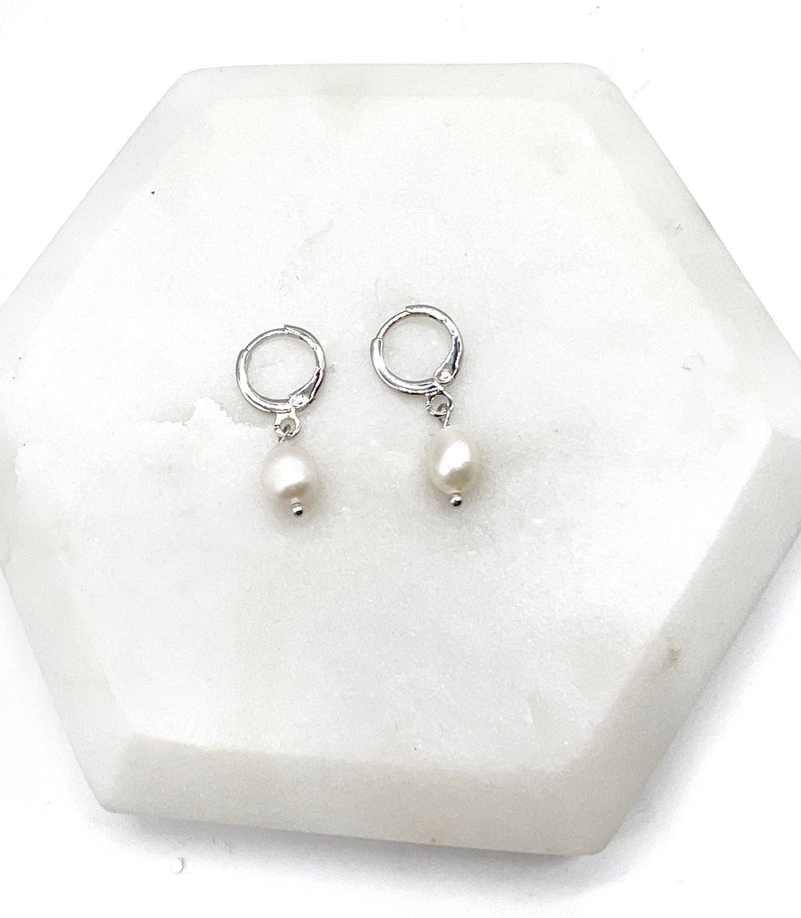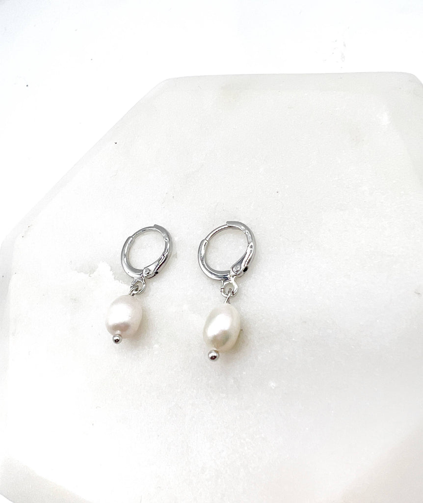 Pearl Silver Huggie Hoops Earrings
