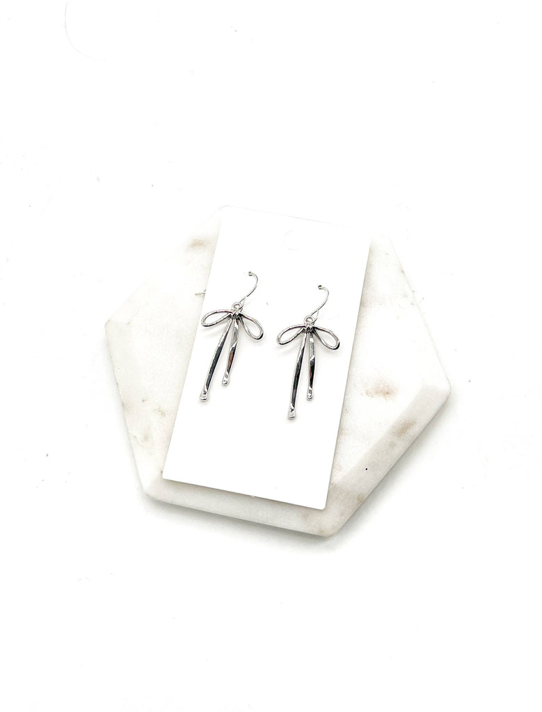 Cute as a bow! These lightweight metal baubles measure a little over 1.3 inch long (not including earwire). Also available in Black and gold